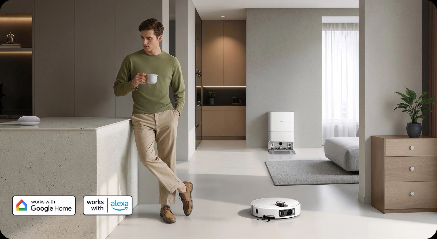 با پشتیبانی از دستیارهای صوتی مانند Alexa و Google Assistant، میتوانید فقط با صدای خود دستگاه را روشن، خاموش یا در حالت دلخواه قرار دهید. این ویژگی تجربهای بیدردسر و مدرن از نظافت هوشمند را برای شما رقم میزند.