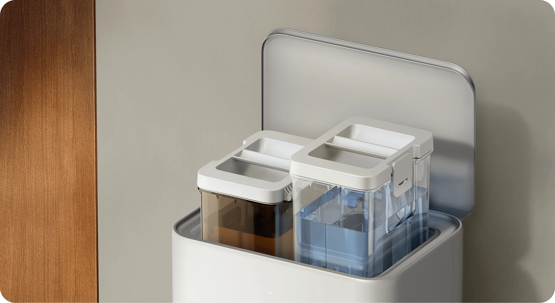 از ویژگیهای برجسته این محصول، ایستگاه پایه خود تمیزکننده است که با آب گرم ۸۰ درجه تیها را شسته و با سیستم شستشوی خودکار، تیها را همیشه تمیز و آماده نگه میدارد. همچنین این ایستگاه میتواند خاک و گرد و غبار جمع شده را برای بیش از ۷۵ روز ذخیره کند بدون اینکه نیازی به تخلیه دستی باشد.